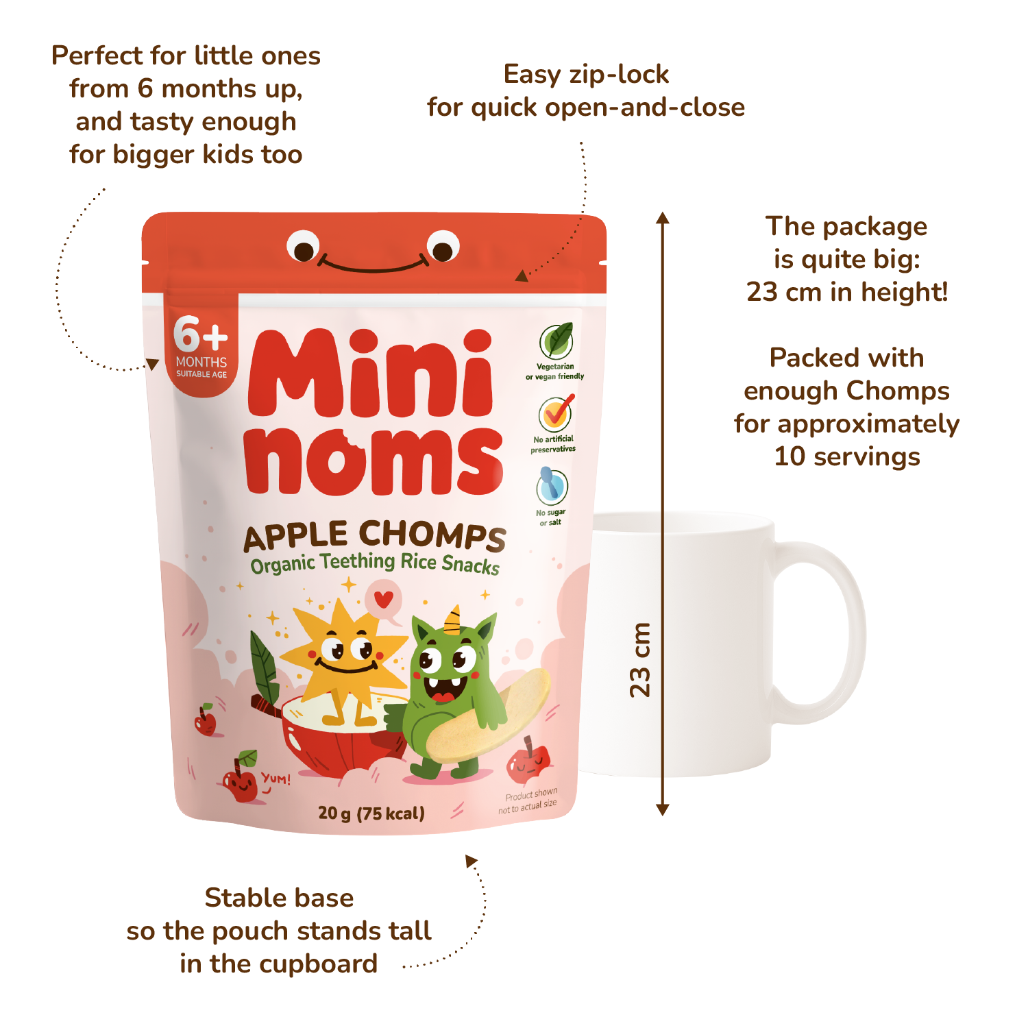 Let your little one experience their first snack worry-free with Mininoms Apple Chomps 🍎