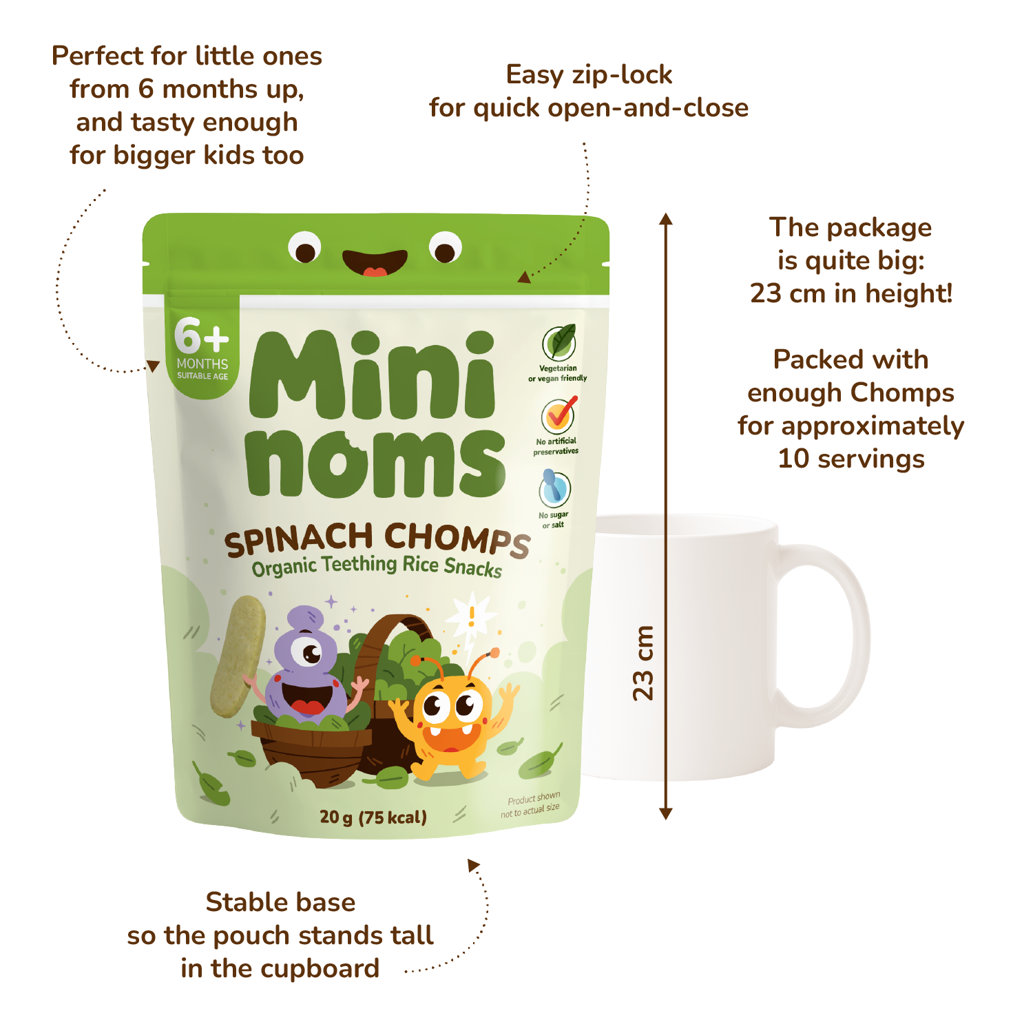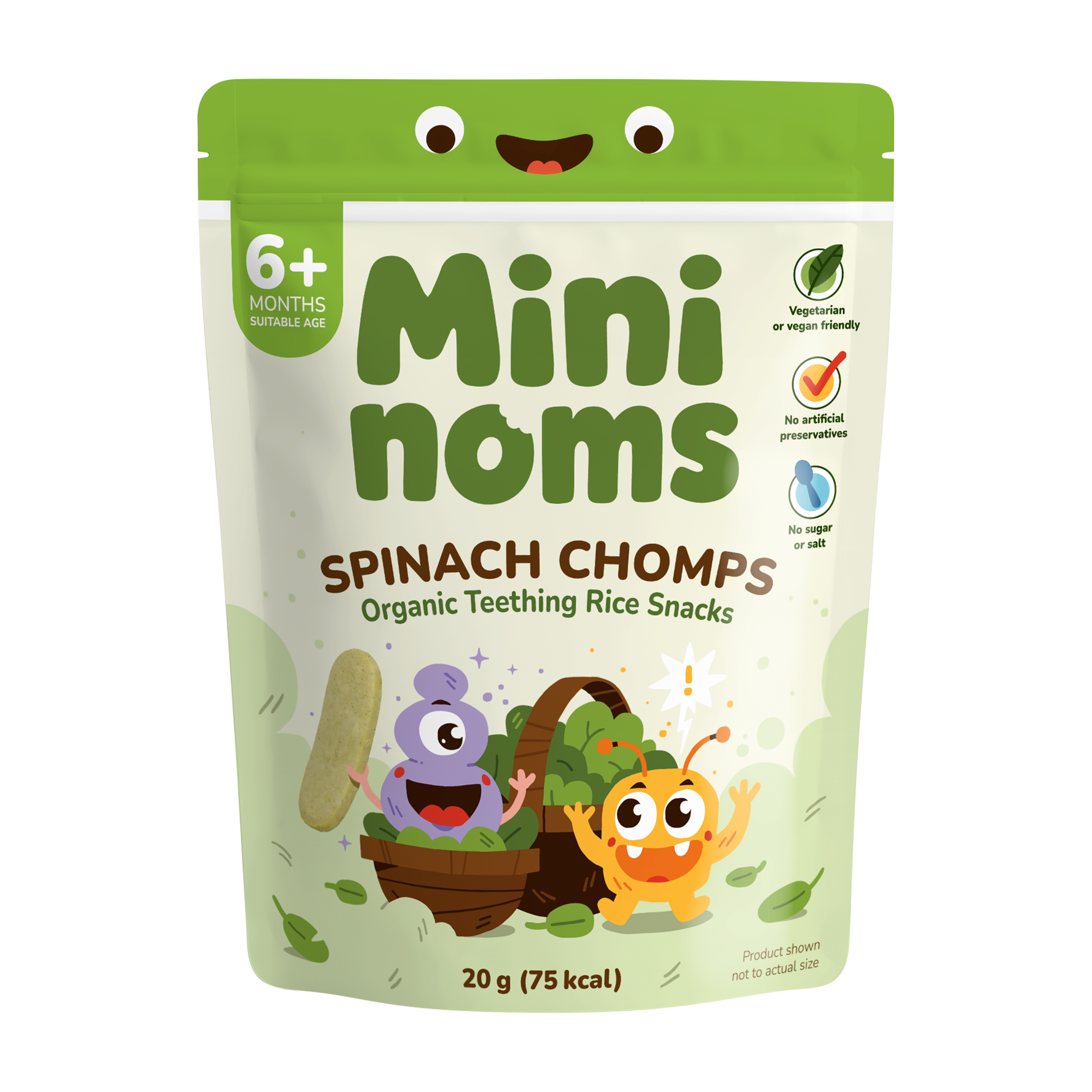 Let your little one experience their first snack worry-free with Mininoms Spinach Chomps🍃
